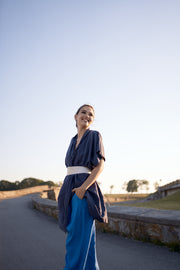 Comes with nude color obi belt to wrap and close. Can be worn as kimono, cardi or dress