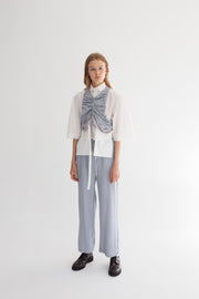 Wide leg, mid waist trousers with two front pockets in striped cotton fabric.